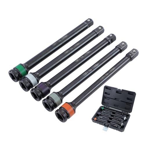 KATSU 1/2-Inch Extension Bars with Torque Limit, 200 mm, 5 Pieces, 110-148 Feet Torque, Chrome Molybdenum Steel, for Safe Locking
