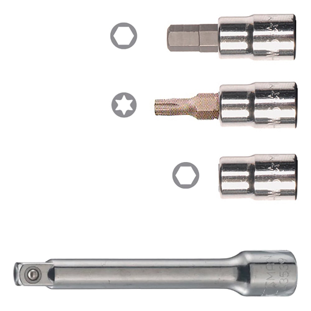 Momentnyckelsats 3/8" 5-60Nm vridmoment för motorcykel - tillbehör: förlängningsbygel, bits, specialhylsor, adaptrar - verktygssats för reparation av motorcykel - svart serie