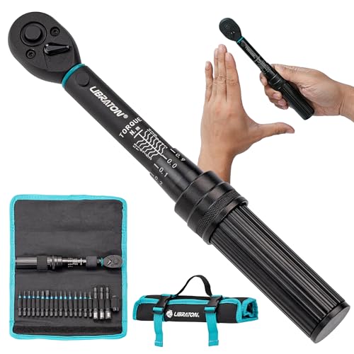 LIBRATON Cykelmomentnyckel 1/4 tum, 2-14 Nm, 72-tandad växelvridmomentnyckel, 0,1 Nm mikroklick momentnyckelsats, Hex & torx slagbitar, mutterdrivrutiner, påverkan till 1/4 tum HEX-omvandlare
