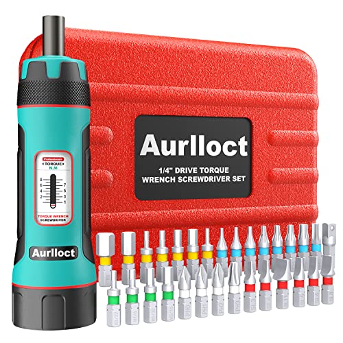 Aurlloct momentnyckelsats, 1-8 Nm, 31 delar momentnyckelbitssats med 1/4" sexkant till 1/4" hylsadapter