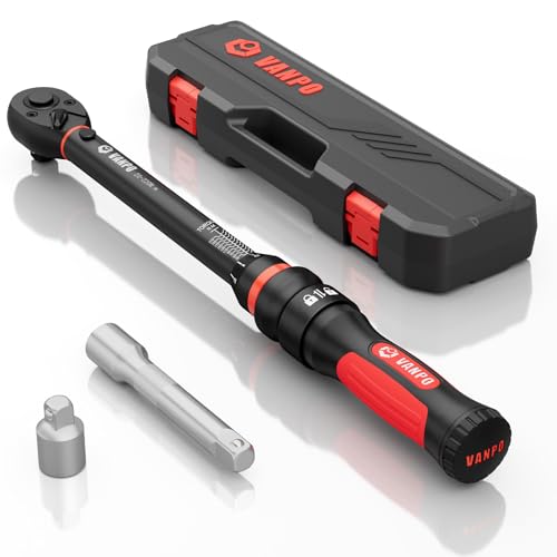 VANPO momentnyckel 1/2 tum, 20–220 Nm, momentnyckelsats inkl. 125 mm förlängningsstång, 1/2 tum–3/8 tums adapter, för bil, lastbil, motorcykel och maskinunderhåll, reparation och underhåll
