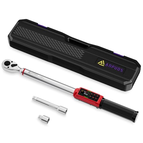 ANPUDS 1/2 tum digital momentnyckel 3-200 Nm momentnyckelsats med 125 mm förlängningsstång, 3/8 tum till 1/2 tum adapter, ±1 % noggrannhet med vibrerande handtag, LED-ringklocka för bil motorcykel