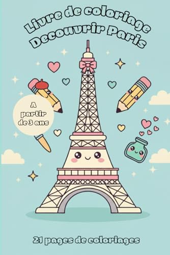 Mon premier coloriage Paris: Livre de coloriage grand format à partir de 3 ans (21 Dessins simples avec lignes épaisses)