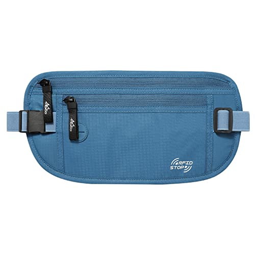 MoKo Secure Travel Money Belt, Undercover Hidden RFID Blocking Travel Wallet, Anti-Theft Passport Wallets for Men Women, Blue