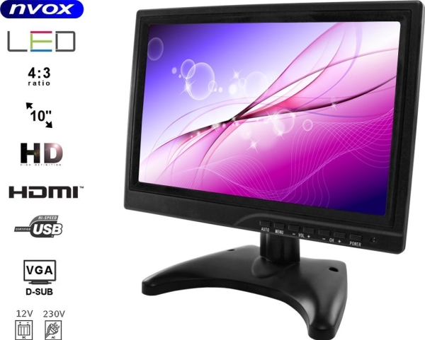 Bilstereo Nvox Monitor Öppen Ram Led 10Cali Vga Hdmi Usb Bnc Av 12V 230V