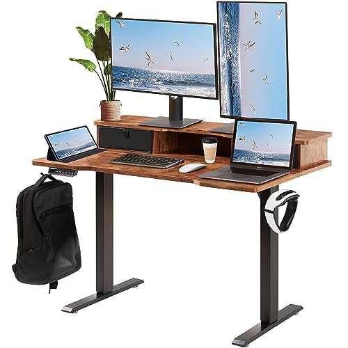 VEVOR Skrivbord höjd justerbar elektrisk, 120 x 60 cm stående skrivbord, 0,72–1,1 m justerbar minnesstyrning, dubbla lager stort datorbord 82 kg lastbart brunt kontorsbord PC-bord