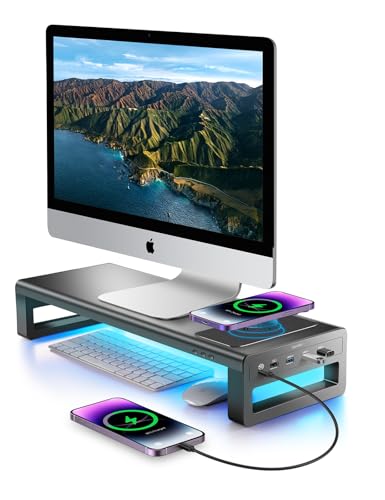 ThingyClub monitorstativ upphöjare med metallfötter för dator, bärbar dator, iMac TV, LCD-skärmskrivare, datorskärmhöjare med skrivbordsbordsskiva, organiserare, 20 x 9,5 tum, robust plattform sparar