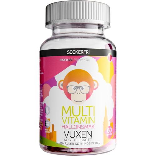 Monkids Multivitamin Sockerfri Vuxen Hallon Gummies 60 st