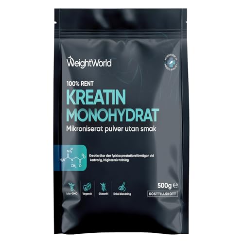 Kreatin Monohydrat Pulver 500 g – 165 portioner – Veganskt, glutenfritt och GMP-godkänt – Mikroniserat kreatinmonohydratpulver – Lätt att blanda – Från WeightWorld