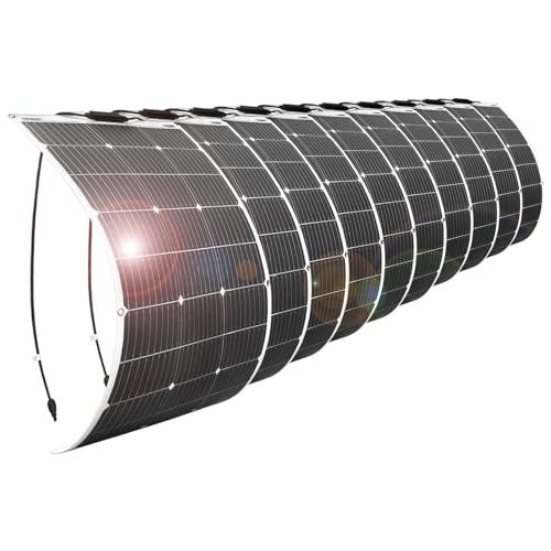 Topunive Flexibel solpanel, 200 W, monokristallin flexibel solpanel, 200 watt, för 12 V, 24 V batterier, husvagn, husbil, båt, yacht, marin, husbil