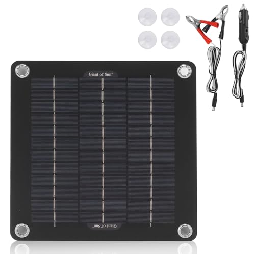 WIYETY 10 W 12 V solpanel: Monokristallin solcellscell med batteriklämmor och cigarettändaruttag, för bil, motorcykel, båt, husbil, lastbil