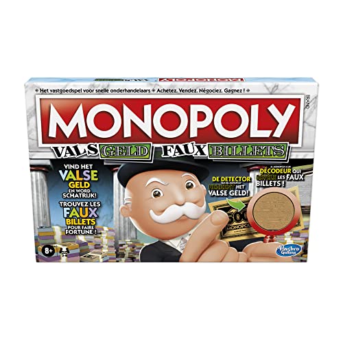 Monopol falskpengar – Belgisk utgåva brädspel för familjer och barn från 8 år med Mr. Monopols Detektor för att upptäcka falska pengar och förfalskade kort för 2-6 spelare