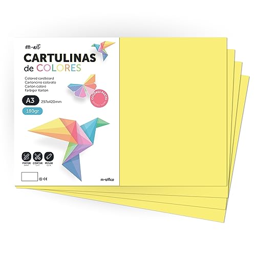 Färgkartong, A3 kartong, Folios 180gr färger, Block kartong pastellfärger, Perfekt för Hantverk, Skriv ut dina dokument och kreativa mönster · m-office (200 ark, Gul)