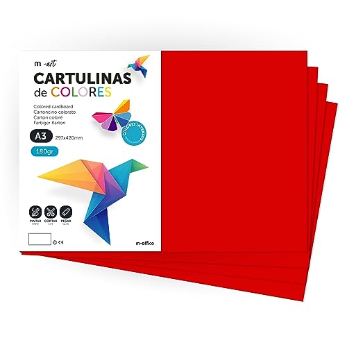 Färgkartong, A3 kartong, Folios Färger 180gr, Block kartong rika färger, Perfekt för Hantverk, Skriv ut dina dokument och kreativa mönster · m-office (25 ark, Mörkröd)