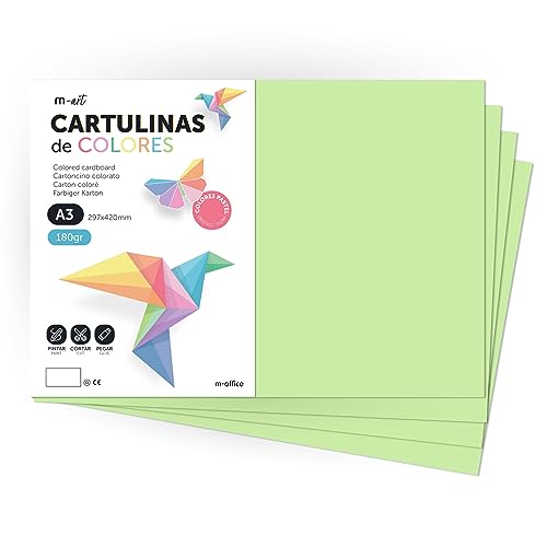 Färgkartong, A3 kartong, Folios Färger 180gr, Block kartong pastellfärger, Perfekt för Hantverk, Skriv ut dina dokument och kreativa mönster · m-office (25 ark, Ljusgrön)