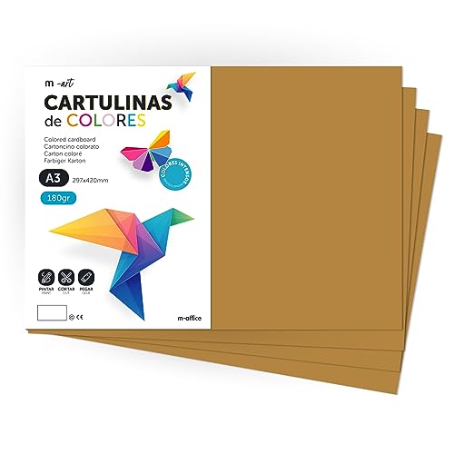 Färgkartong, A3 kartong, Folios Färger 180gr, Block kartong rika färger, Perfekt för Hantverk, Skriv ut dina dokument och kreativa mönster · m-office (100 ark, Ljusbrun)