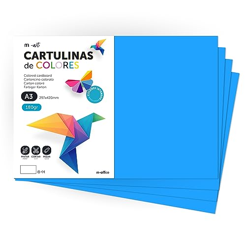 Färgkartong, A3 kartong, Folios Färger 180gr, Block kartong rika färger, Perfekt för Hantverk, Skriv ut dina dokument och kreativa mönster · m-office (200 ark, Medium Blå)