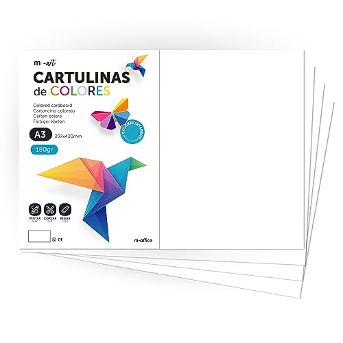 Färgkartong, A3 kartong, Folios Färger 180gr, Block kartong rika färger, Perfekt för Hantverk, Skriv ut dina dokument och kreativa mönster · m-office (25 ark, Vit)