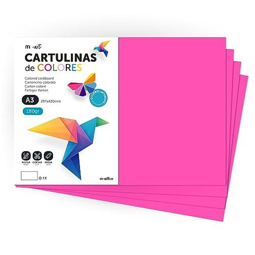 Färgkartong, A3 kartong, Folios Färger 180gr, Block kartong rika färger, Perfekt för Hantverk, Skriv ut dina dokument och kreativa mönster · m-office (50 ark, Fuchsia)