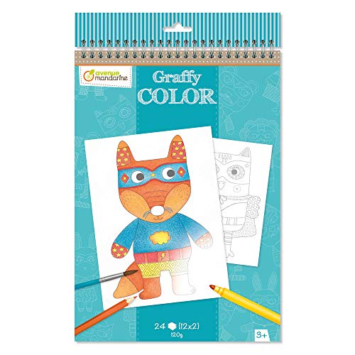 Avenue Mandarine GY017O målningsblock Graffy Color, ritpapper 120 g, mikroperforerat, 2 x 12 mönster = 24 ark, lämplig för barn från 3 år, 1 st, gosedjur