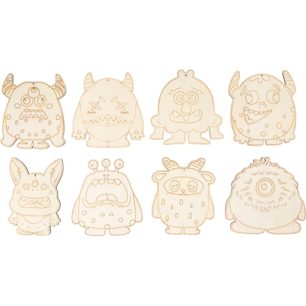 Träfigurer, Monster, H: 12,4 cm, tjocklek 3 mm, 24 st./ 1 förp.