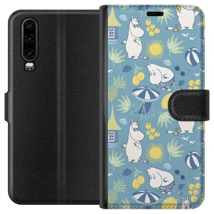 Huawei P30 Plånboksfodral Strandtema med frukter, parasoller, sommarhus och glada figurer i färgglatt mönster fyllt av lekfulla detaljer och varm som