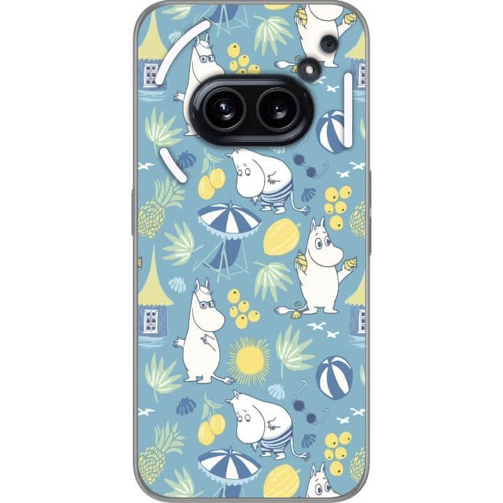 Nothing Phone (2a) Plus Genomskinligt Skal Strandtema med frukter, parasoller, sommarhus och glada figurer i färgglatt mönster fyllt av lekfulla deta