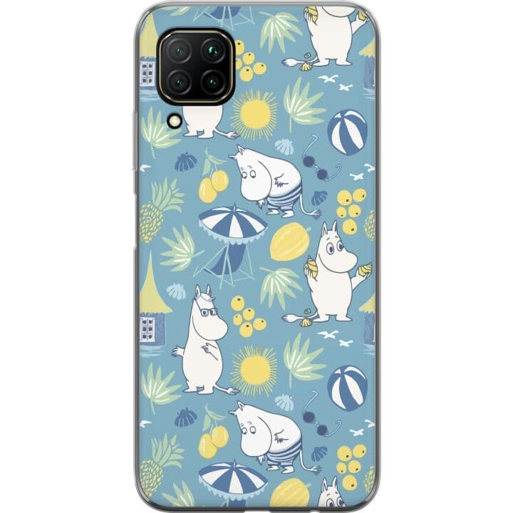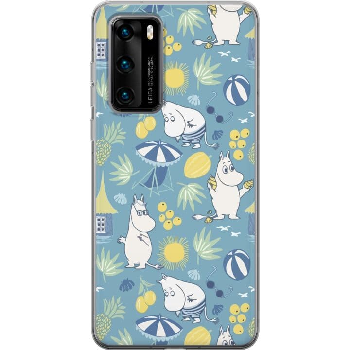 Huawei P40 Genomskinligt Skal Strandtema med frukter, parasoller, sommarhus och glada figurer i färgglatt mönster fyllt av lekfulla detaljer och varm