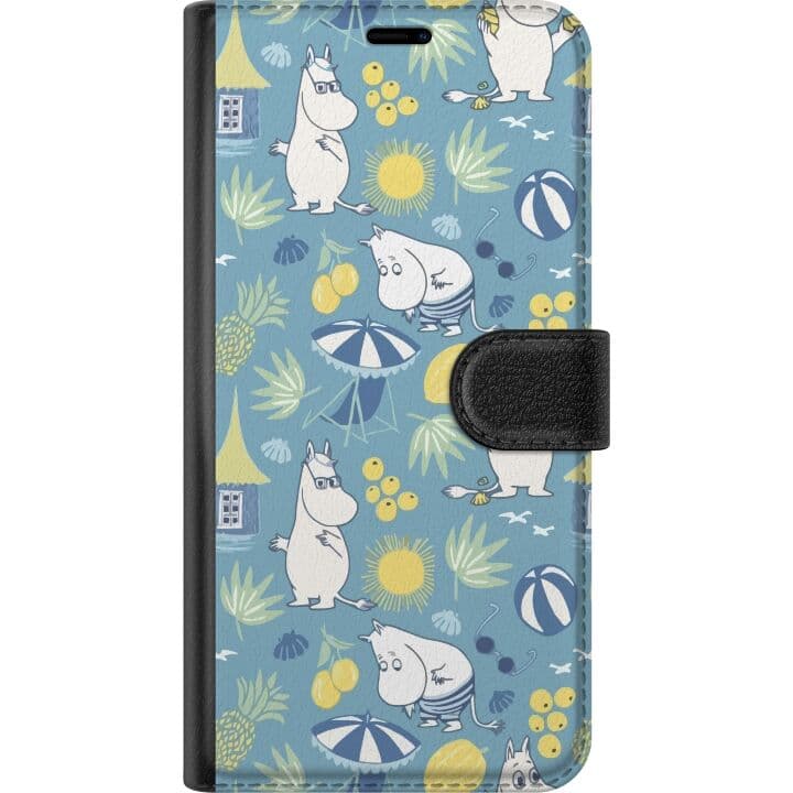 Xiaomi Redmi Note 13 Pro Plånboksfodral Strandtema med frukter, parasoller, sommarhus och glada figurer i färgglatt mönster fyllt av lekfulla detalje