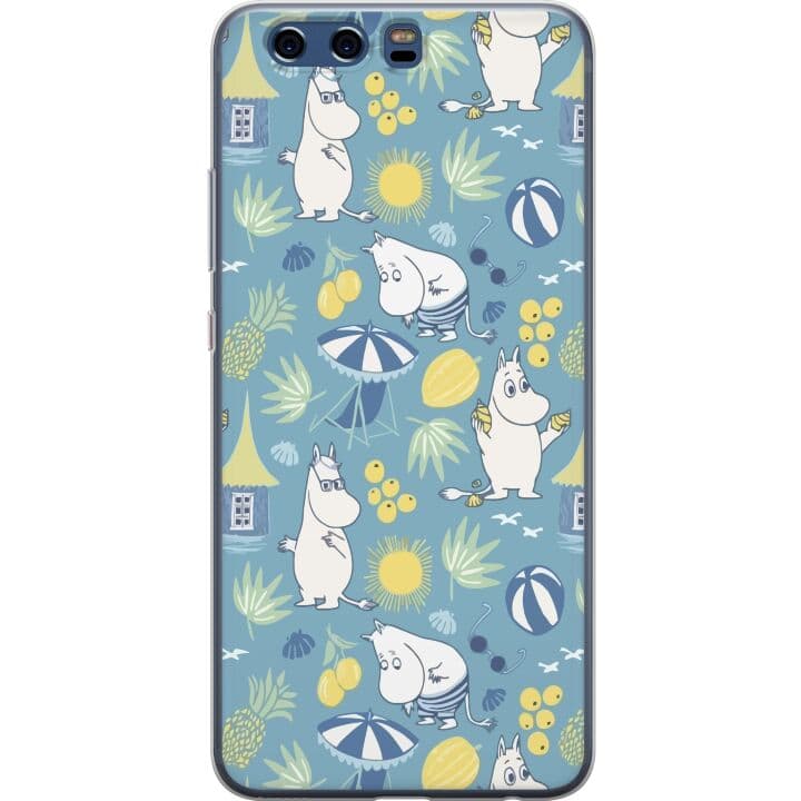 Huawei P10 Genomskinligt Skal Strandtema med frukter, parasoller, sommarhus och glada figurer i färgglatt mönster fyllt av lekfulla detaljer och varm