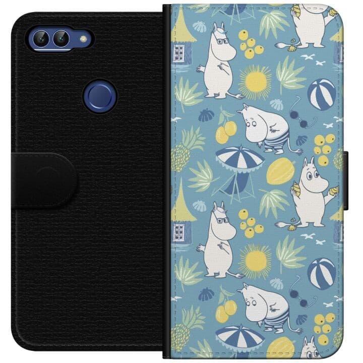 Huawei P smart Plånboksfodral Strandtema med frukter, parasoller, sommarhus och glada figurer i färgglatt mönster fyllt av lekfulla detaljer och varm