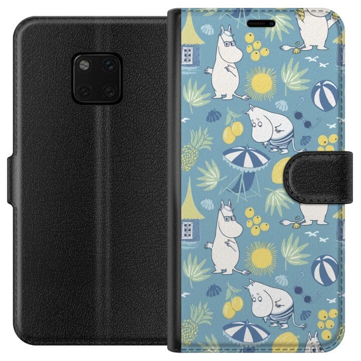 Huawei Mate 20 Pro Plånboksfodral Strandtema med frukter, parasoller, sommarhus och glada figurer i färgglatt mönster fyllt av lekfulla detaljer och
