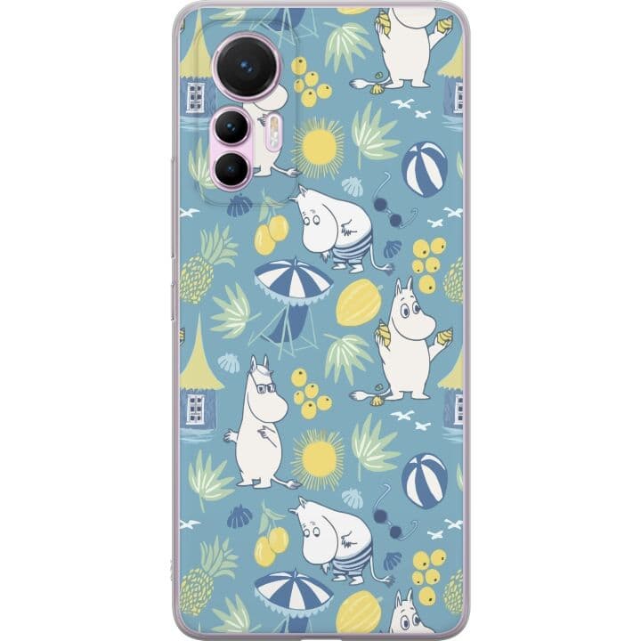 Xiaomi 12 Lite Genomskinligt Skal Strandtema med frukter, parasoller, sommarhus och glada figurer i färgglatt mönster fyllt av lekfulla detaljer och