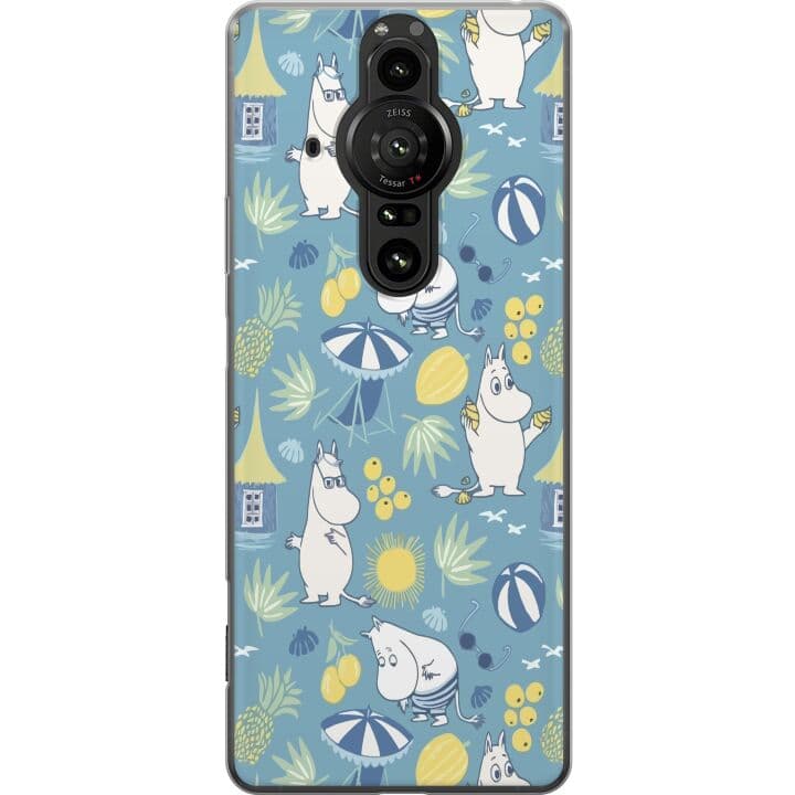 Sony Xperia Pro-I Genomskinligt Skal Strandtema med frukter, parasoller, sommarhus och glada figurer i färgglatt mönster fyllt av lekfulla detaljer o