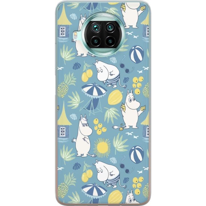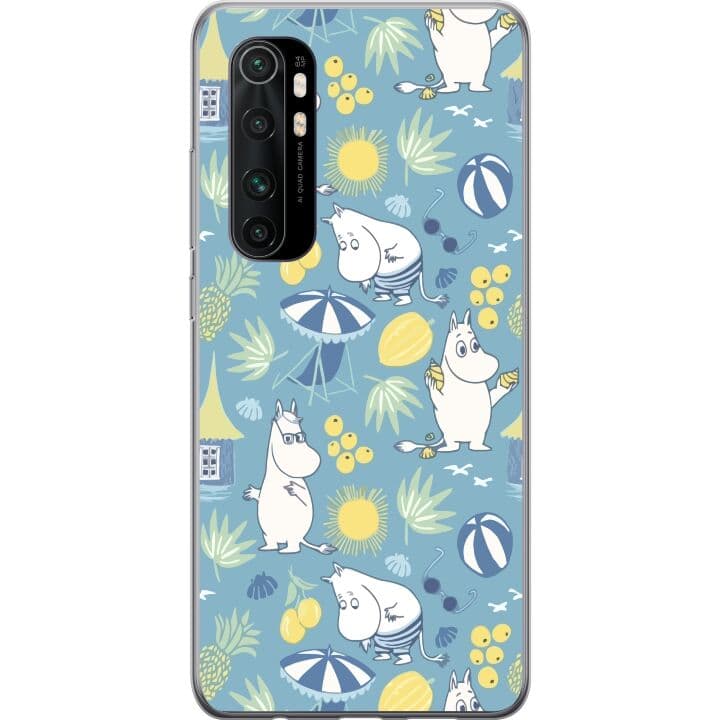 Xiaomi Mi Note 10 Lite Genomskinligt Skal Strandtema med frukter, parasoller, sommarhus och glada figurer i färgglatt mönster fyllt av lekfulla detal