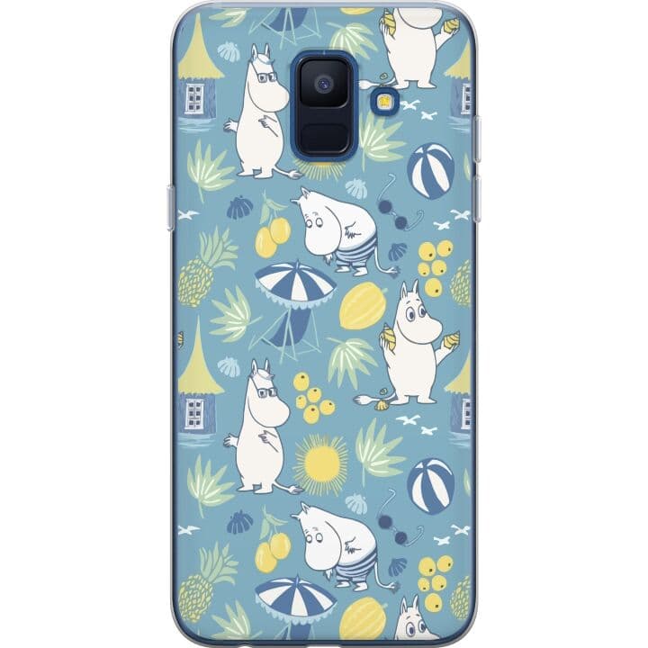 Samsung Galaxy A6 (2018) Genomskinligt Skal Strandtema med frukter, parasoller, sommarhus och glada figurer i färgglatt mönster fyllt av lekfulla det