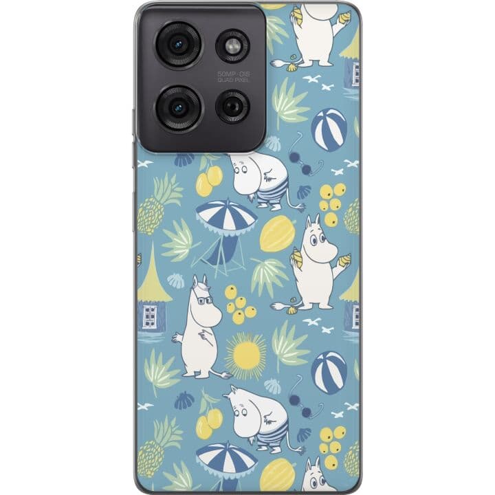 Motorola Moto G75 Genomskinligt Skal Strandtema med frukter, parasoller, sommarhus och glada figurer i färgglatt mönster fyllt av lekfulla detaljer o