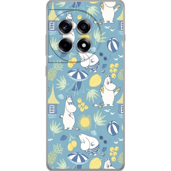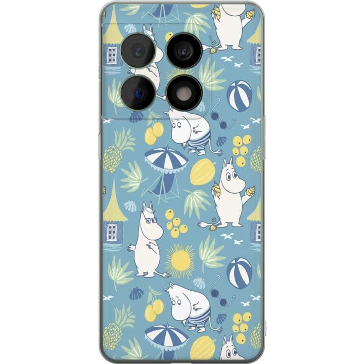 OnePlus 12R Genomskinligt Skal Strandtema med frukter, parasoller, sommarhus och glada figurer i färgglatt mönster fyllt av lekfulla detaljer och var