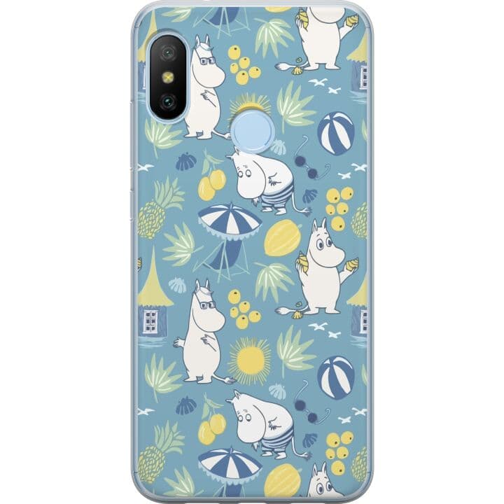 Xiaomi Mi A2 Lite Genomskinligt Skal Strandtema med frukter, parasoller, sommarhus och glada figurer i färgglatt mönster fyllt av lekfulla detaljer o