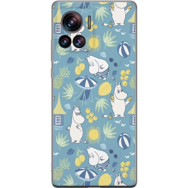 Motorola Edge 30 Ultra Genomskinligt Skal Strandtema med frukter, parasoller, sommarhus och glada figurer i färgglatt mönster fyllt av lekfulla detal