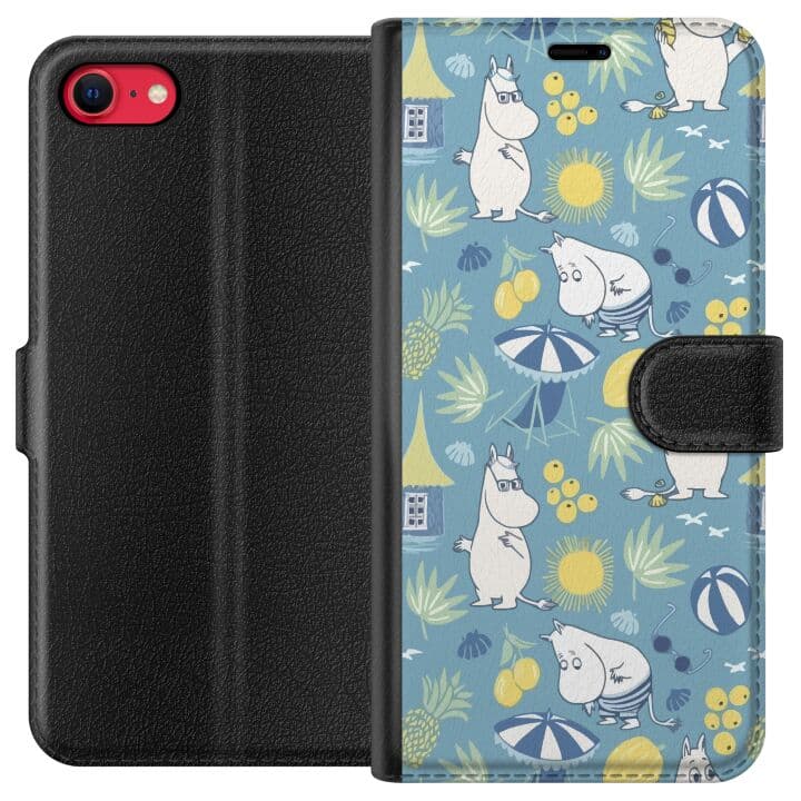 Apple iPhone 7 Plånboksfodral Strandtema med frukter, parasoller, sommarhus och glada figurer i färgglatt mönster fyllt av lekfulla detaljer och varm