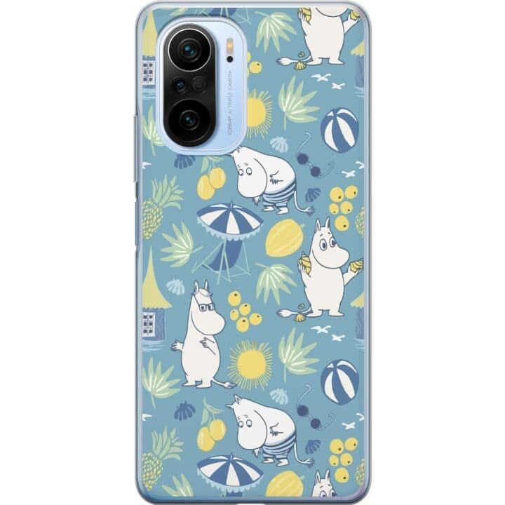 Xiaomi Mi 11i Genomskinligt Skal Strandtema med frukter, parasoller, sommarhus och glada figurer i färgglatt mönster fyllt av lekfulla detaljer och v