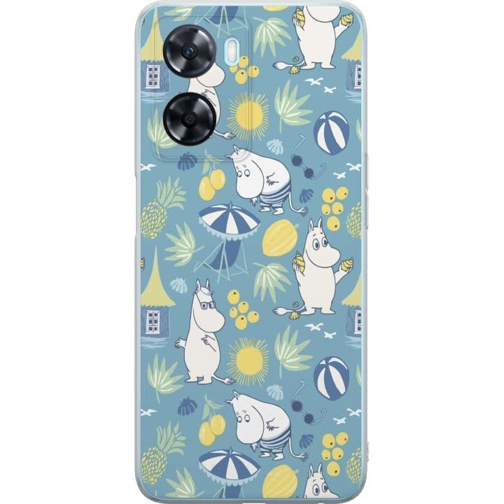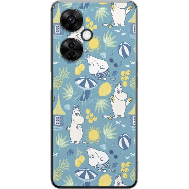 OnePlus Nord CE3 Genomskinligt Skal Strandtema med frukter, parasoller, sommarhus och glada figurer i färgglatt mönster fyllt av lekfulla detaljer oc