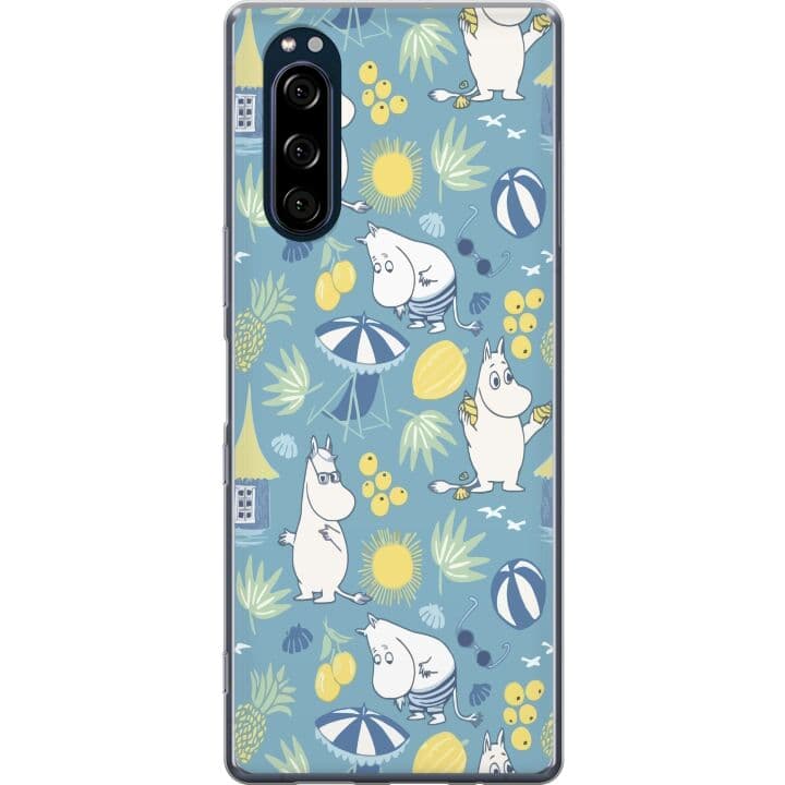 Sony Xperia 5 Genomskinligt Skal Strandtema med frukter, parasoller, sommarhus och glada figurer i färgglatt mönster fyllt av lekfulla detaljer och v