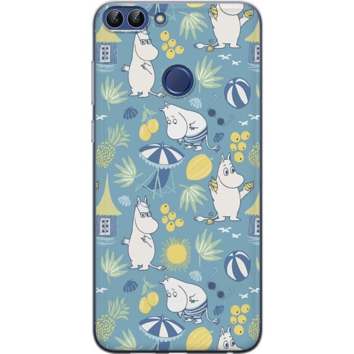 Huawei P smart Genomskinligt Skal Strandtema med frukter, parasoller, sommarhus och glada figurer i färgglatt mönster fyllt av lekfulla detaljer och