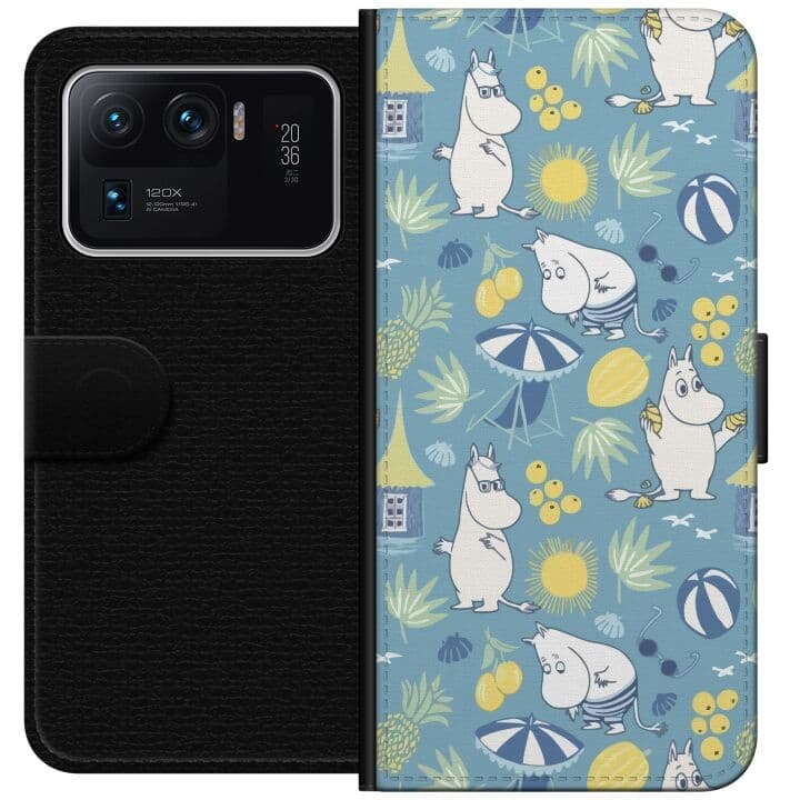 Xiaomi Mi 11 Ultra Plånboksfodral Strandtema med frukter, parasoller, sommarhus och glada figurer i färgglatt mönster fyllt av lekfulla detaljer och