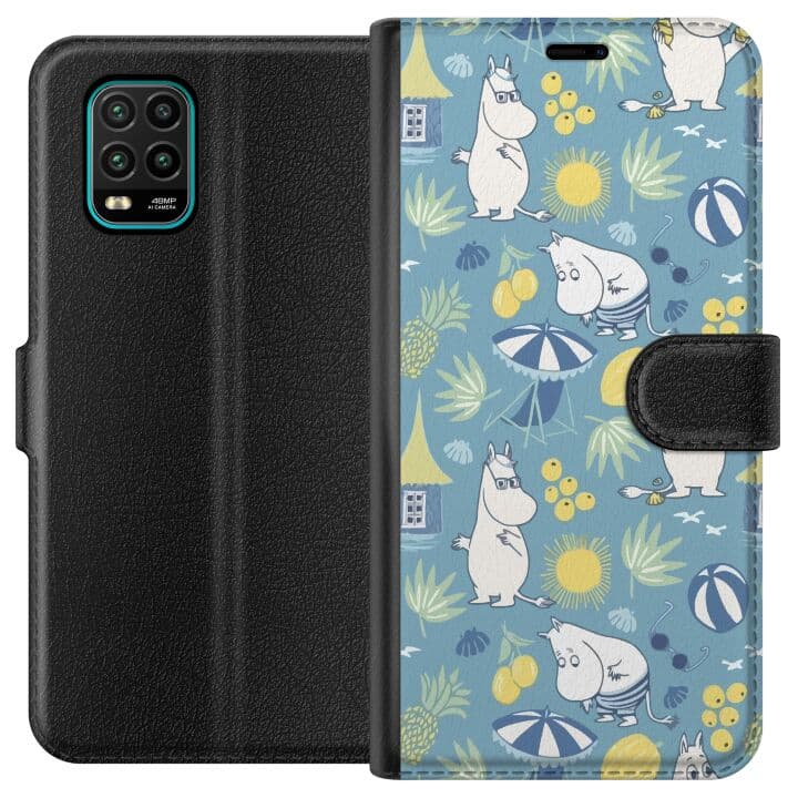 Xiaomi Mi 10 Lite 5G Plånboksfodral Strandtema med frukter, parasoller, sommarhus och glada figurer i färgglatt mönster fyllt av lekfulla detaljer oc