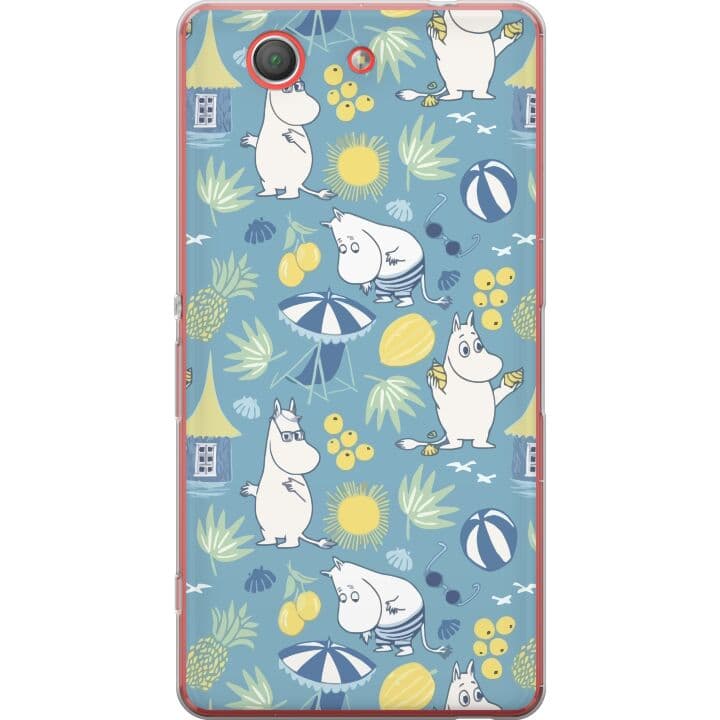 Sony Xperia Z3 Compact Genomskinligt Skal Strandtema med frukter, parasoller, sommarhus och glada figurer i färgglatt mönster fyllt av lekfulla detal