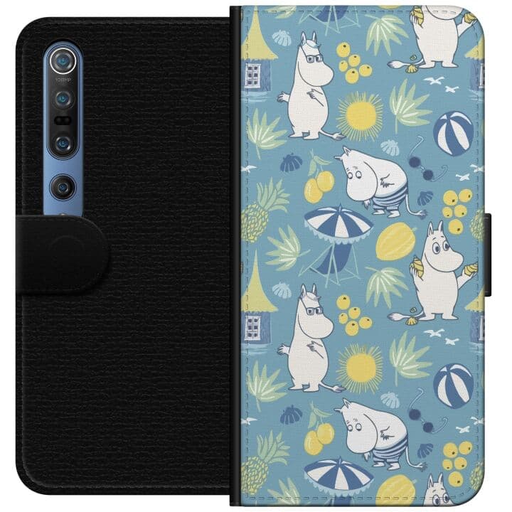 Xiaomi Mi 10 Pro 5G Plånboksfodral Strandtema med frukter, parasoller, sommarhus och glada figurer i färgglatt mönster fyllt av lekfulla detaljer och