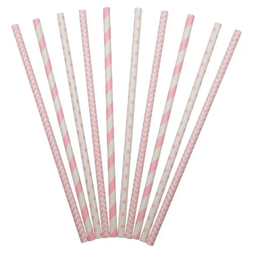 Partymix Papperssugrör med Rosa mönster 24-pack